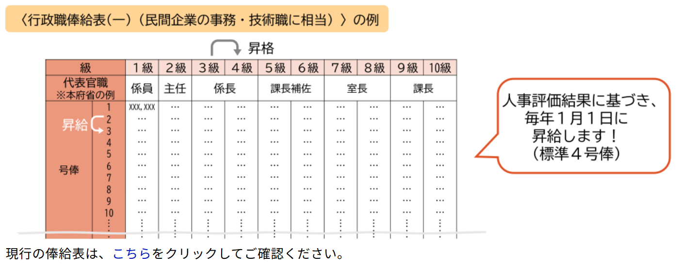 それを考えるために、まず国家公務員の俸給表を理解したいと思うに至りました。